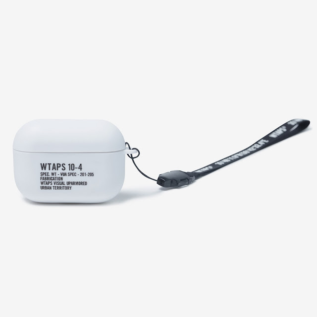 ブラック、ホワイトを展開するTPU素材にスペックロゴをプリントしたWTAPS別注のAirPodsケース。着脱式のリーシュにはGPSロゴをプリント。