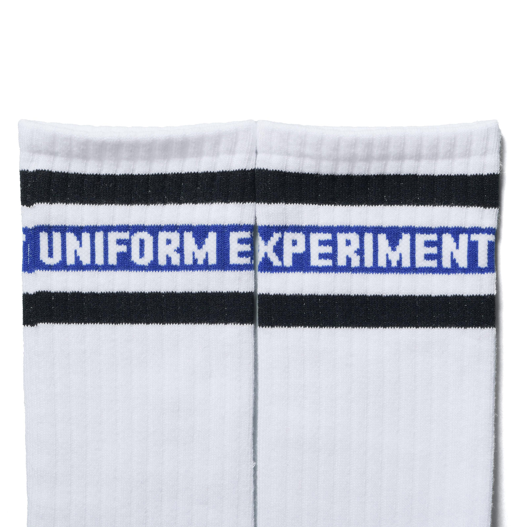 シーズナルーカラーにリンクしたラインレギュラーソックスは、ブルー、ピンク、グリーンの3色展開。UNIFORM EXPERIMENTロゴはぐるりと織りで表現。素材には柔らかさと強度を兼ね備えたコットン×アクリルのハイブリッド素材を使用。負荷のかかる足裏、つま先、かかとはクッション性に優れたパイル編みにすることでドライで快適な履き心地を実現。スタイリングのアクセントに最適な一足です。